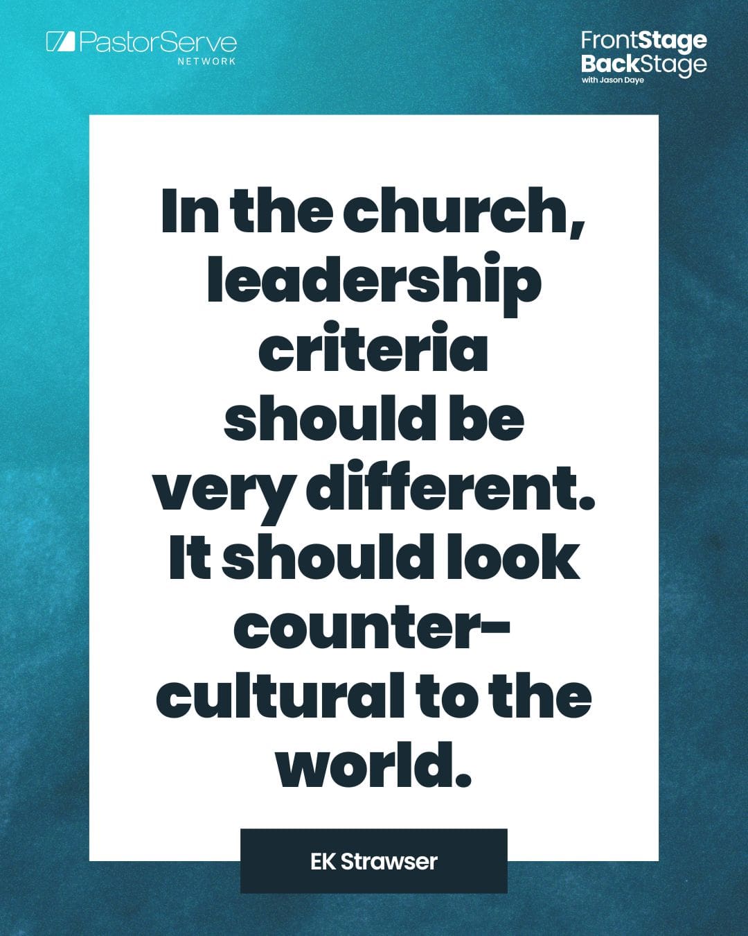 - The criteria for church leadership must be counter-cultural, prioritizing discipleship and Christ-likeness over the same competencies and charisma that the world values in its leaders.