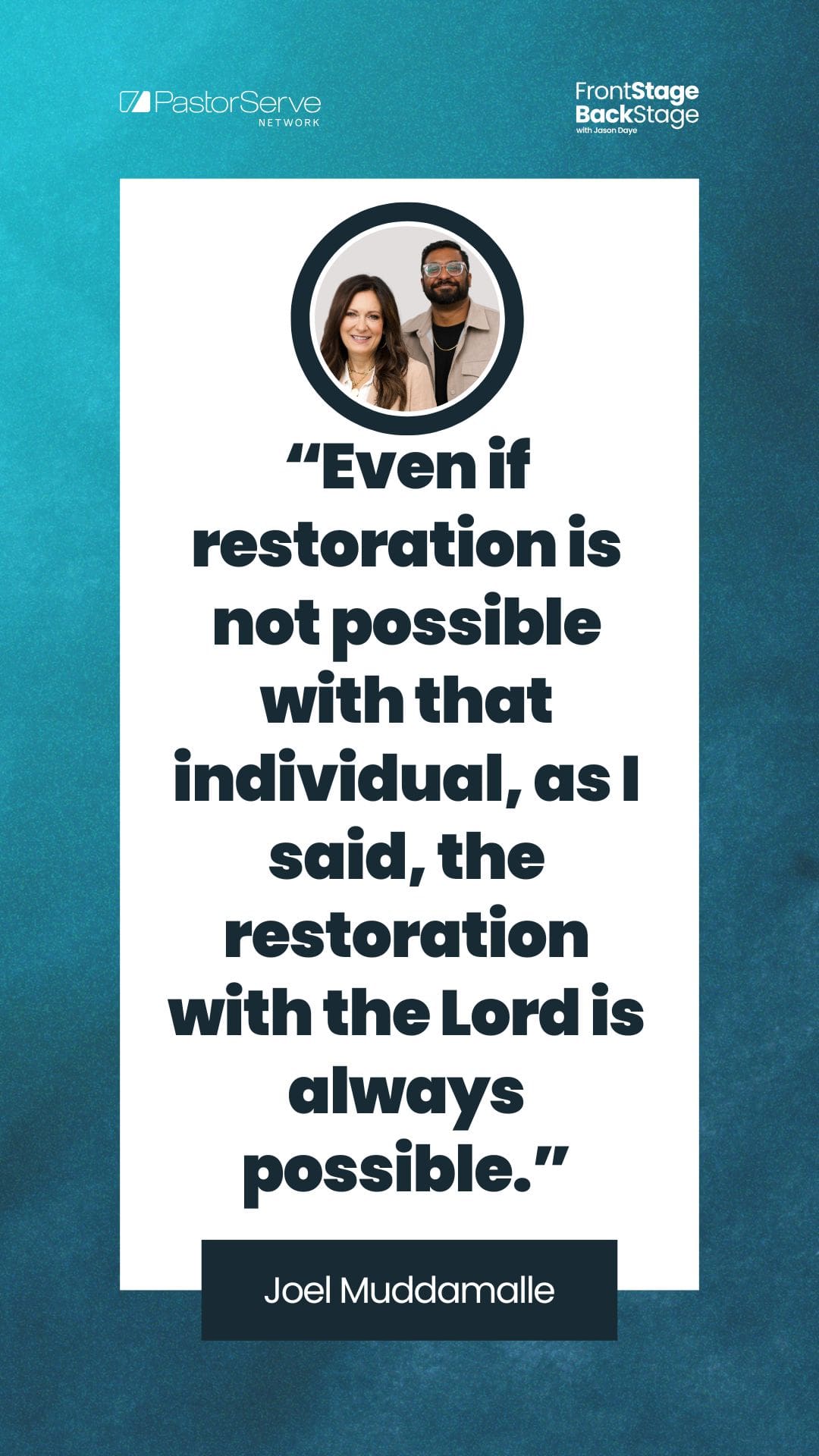 Hello, friends, and welcome to another insightful episode of FrontStage Backstage. I’m your host, Jason Daye. Each and every week, I have the privilege of sitting down with a trusted ministry leader, and we tackle a topic all in an effort to help you and pastors and ministry leaders just like you truly thrive in both life and leadership. If you’re joining us on YouTube, please give us a thumbs up. Take a moment to drop your name and the name of your ministry in the comments below. We’ll be praying for you. And whether you’re joining us on YouTube or your favorite podcast platform, please be sure to subscribe so you do not miss out on any of these great conversations. I’m really excited today because I’m welcoming back two guests who’ve been on the show before, Lysa TerKeurst and Joel Muddamalle. Lysa, many of you know her as a New York Times best-selling author. She is the President and the Chief Visionary Officer of Proverbs 31 Ministries. Joel is the Director of Theology and Research for Proverbs 31. Together, they’re the co-hosts of the Therapy and Theology podcast. Their most recent book, that they co-authored along with Dr. Jim Cress, is entitled Surviving an Unwanted Divorce. So Lysa and Joel, welcome to the show.