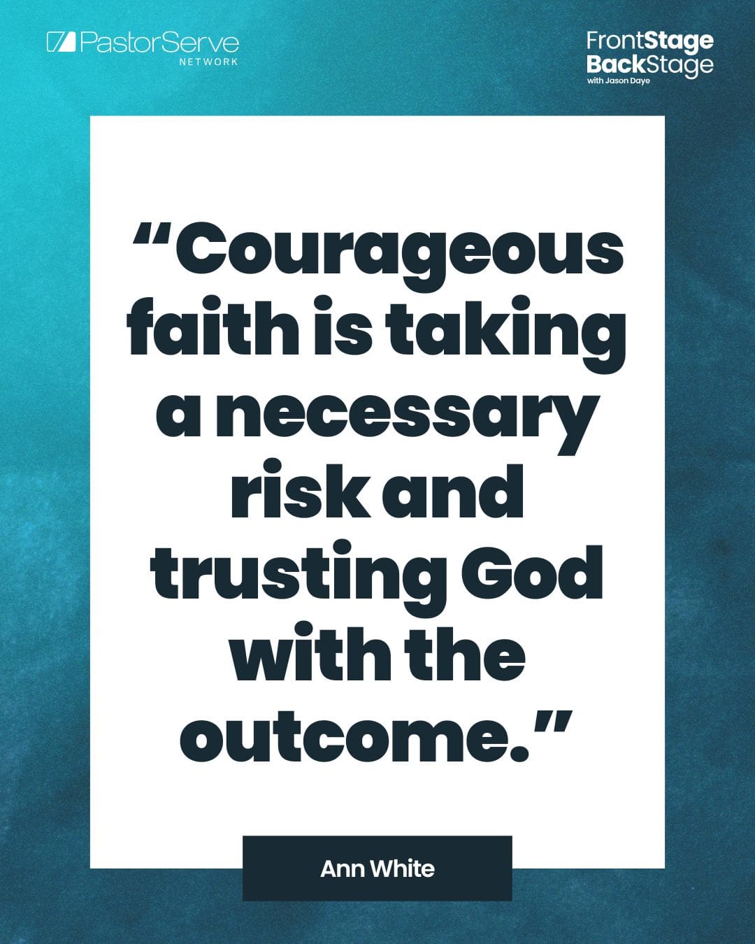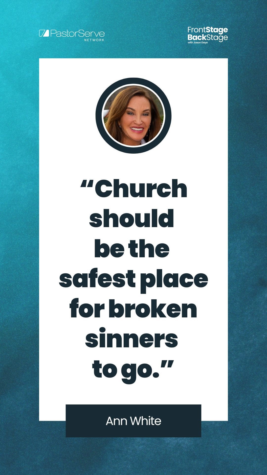 Hello friends, and welcome to another episode of FrontStage BackStage. I’m your host, Jason Daye. Each episode, I have the privilege and the honor of sitting down with a trusted ministry leader, and together we tackle a topic in an effort to help you, and pastors and ministry leaders just like you really thrive in both life and leadership. If you’re joining us on YouTube, please give us a thumbs up and drop your name and the name of your ministry in the comments below. We love getting to know our audience better. We’ll be praying for you and for your ministry. And whether you’re joining us on YouTube or your favorite podcast platform, please be sure to subscribe, to follow, to do all the things. Share this with someone else. We do not want you to miss out on any of these great conversations. And I’m excited this week, I’m joined by Ann White. Ann is an internationally known author, speaker, Bible teacher. She is the founder and CEO of Courage For Life, an incredible ministry. And at this time, I’d like to welcome Ann White to the show. Ann, welcome to